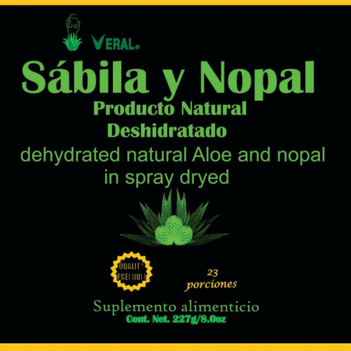 Código: NOS227 Descripción: Mezcla de sábila y nopal natural en polvo para diluir, presentación en frasco de 227 grs