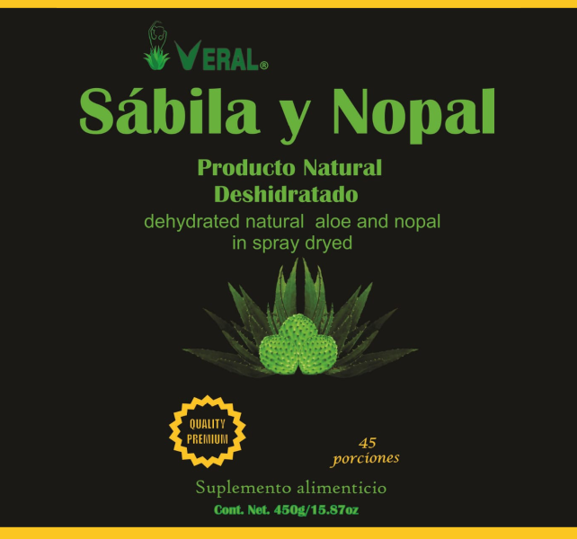 Código: NOS450 Descripción: Mezcla de sábila y nopal natural en polvo para diluir, presentación en frasco de 450 grs
